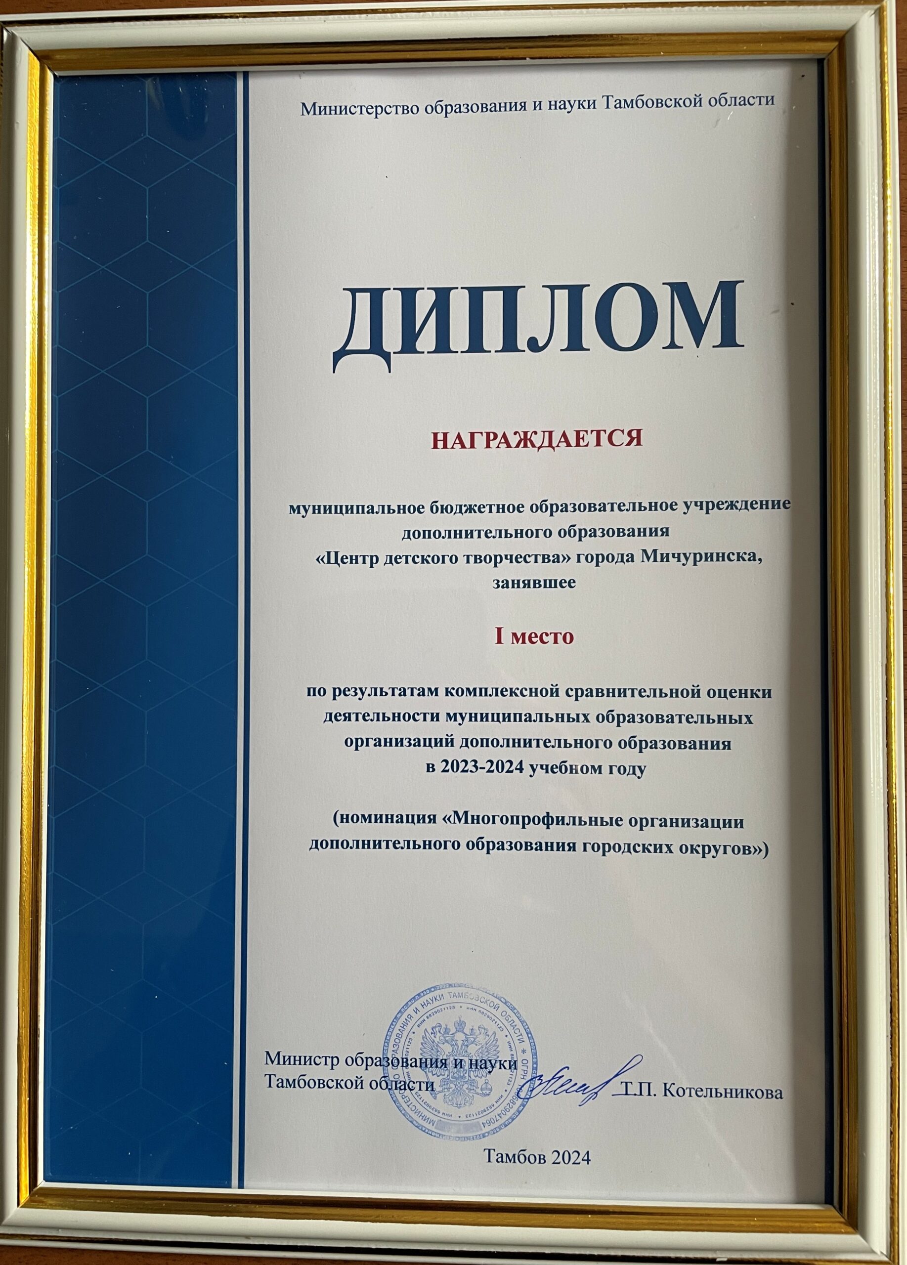 В номинации «Многопрофильные организации дополнительного образования городских округов» Центр детского творчества г. Мичуринска получил диплом I степени. Поздравляем коллектив Центра детского творчества! Вперед, к новым успехам!